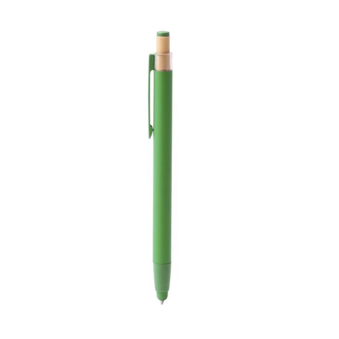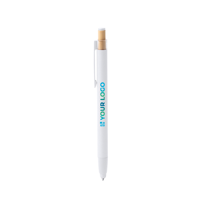 Esferográfica em alumínio reciclado com acabamento mate, pensada para um uso diário confortável no escritório e em visitas comerciais. Integra um botão de pressão em bambu com detalhes de cor que ajudam a identificá-la rapidamente. O clip e a ponta a condizer mantêm uma imagem coerente e facilitam levá-la no caderno, no bolso ou na credencial. Inclui carga jumbo de tinta azul para uma escrita mais constante e com menos substituições. Opção prática para distribuições em feiras, formações internas ou ações de marca.