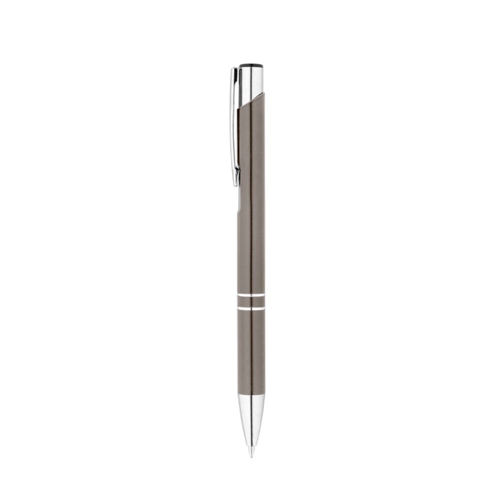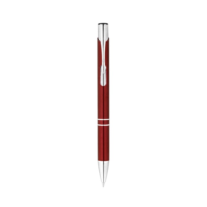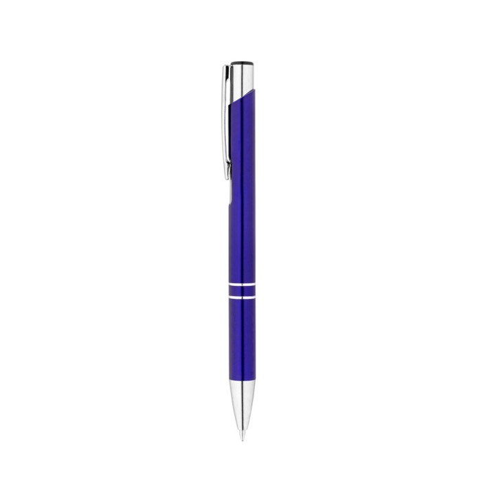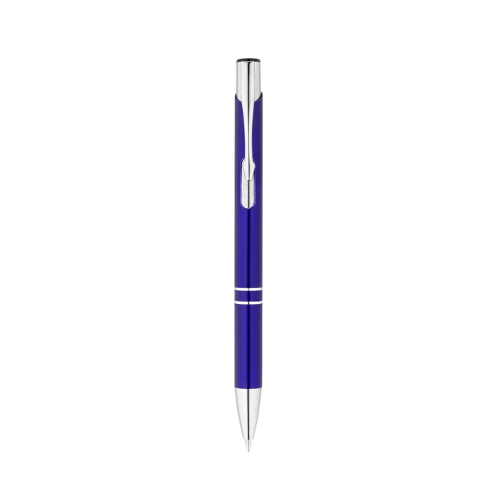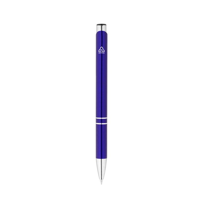 Esta caneta com botão combina um design clássico, popular entre os nossos clientes, e o compromisso com o meio ambiente. Fabricada em alumínio reciclado, é uma opção mais sustentável. O seu corpo resistente permite fazer publicidade durante mais tempo. A tinta azul é ideal para uso diário no escritório, escola ou eventos. Graças ao seu design elegante, é perfeita como presente promocional ou artigo corporativo. Disponível com serviço expresso para entregas rápidas. Uma forma simples de cuidar do planeta enquanto fornece à sua equipa o que precisam ou enquanto se promove numa feira.