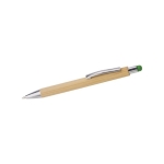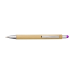 Simples caneta promocional feita de bambu e com detalhes metálicos, a qual também conta com uma ponteira táctil na parte superior, disponível em várias cores.