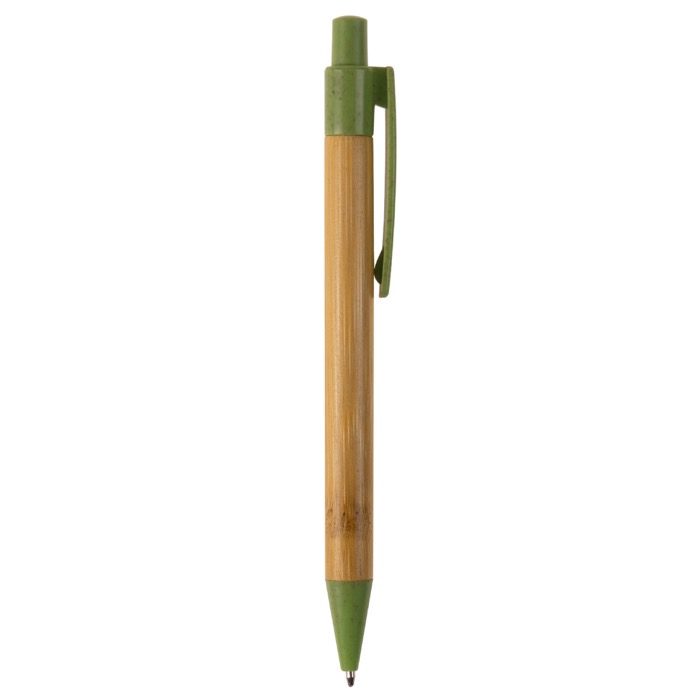 Caneta de material de bambu com clipe, botão e ponta de palha de trigo. Com recarga de plástico X20 de escrita azul.