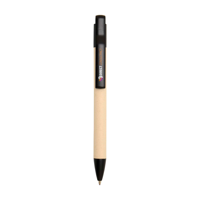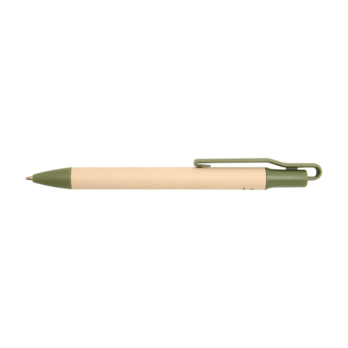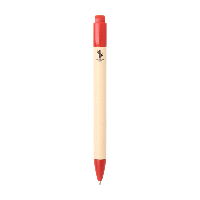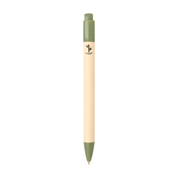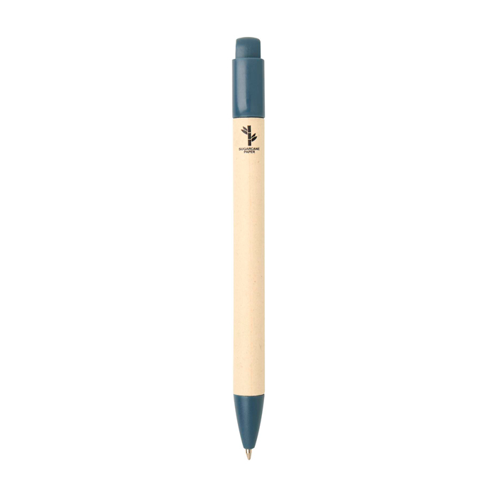Caneta com mecanismo de clique feita de papel de cana-de-açúcar. Cor da tinta da caneta: Azul. Tamanho da ponta: 1,00 mm. Comprimento de escrita: 1000 metros.