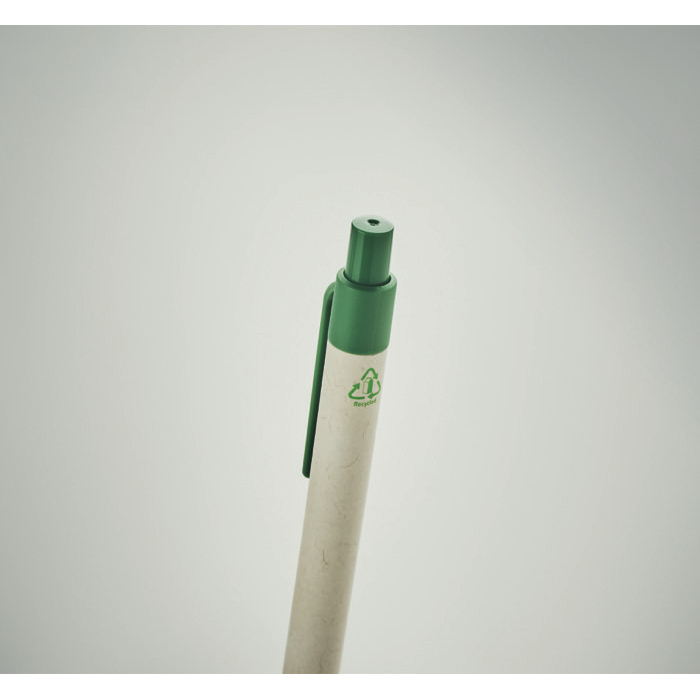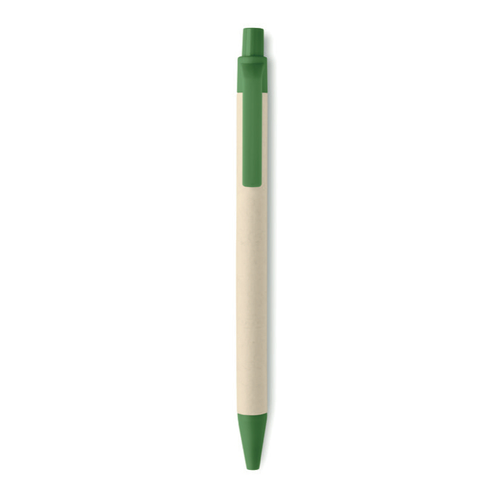 Caneta feita de pacotes de leite reciclados e PLA do milho, contando com um preço muito económico e com várias opções para imprimir o seu logótipo a cor.