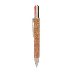 Apresentamos a nossa versátil caneta de cortiça com quatro cores de escrita diferentes. Escrita sustentável e colorida, tudo num só!
