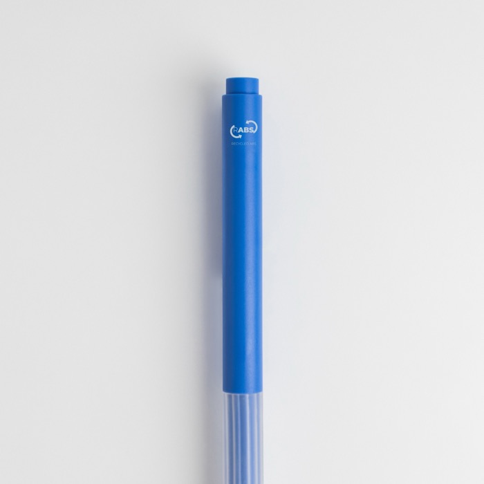 Caneta feita de ABS reciclado. Corpo e componentes em cores sólidas. Inclui pega de silicone translúcida para conforto extra, tinta de gel preta e mecanismo de botão silencioso, ideal para trabalhar ou estudar.