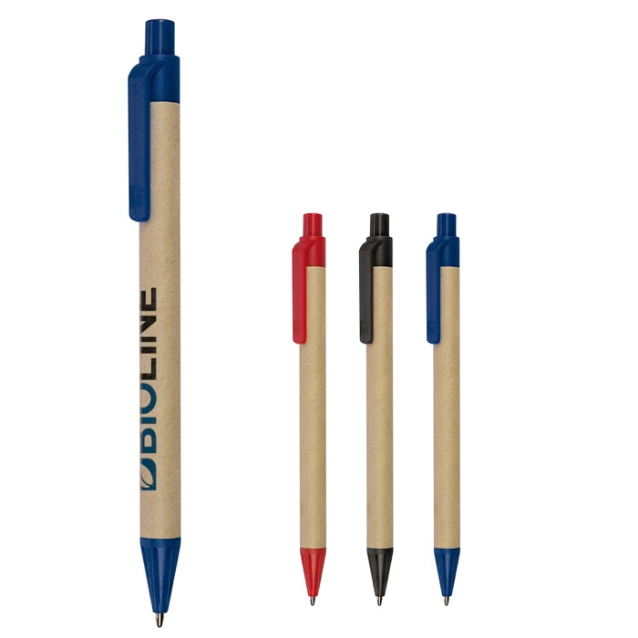 Caneta feita de papel reciclado. Recarga X20, escrita azul.