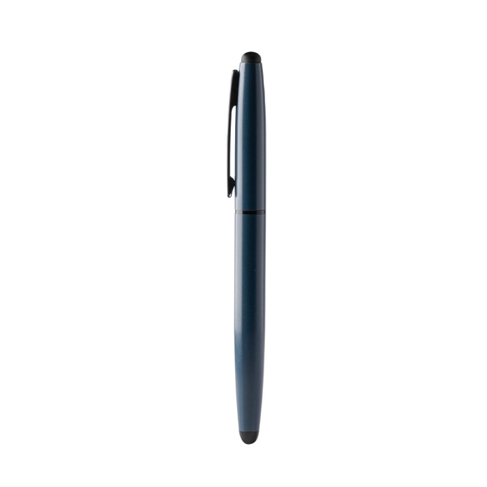 Esferográfica roller em alumínio reciclado com ponteira tátil, tinta azul