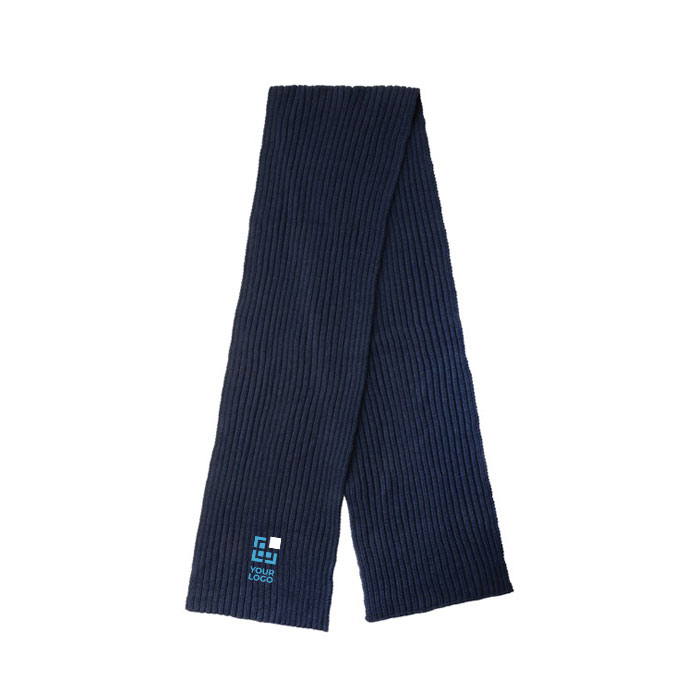 Belo cachecol publicitário feito de um material que requer menos energia e água no seu fabrico. Uma opção sustentável para os seus brindes de inverno.