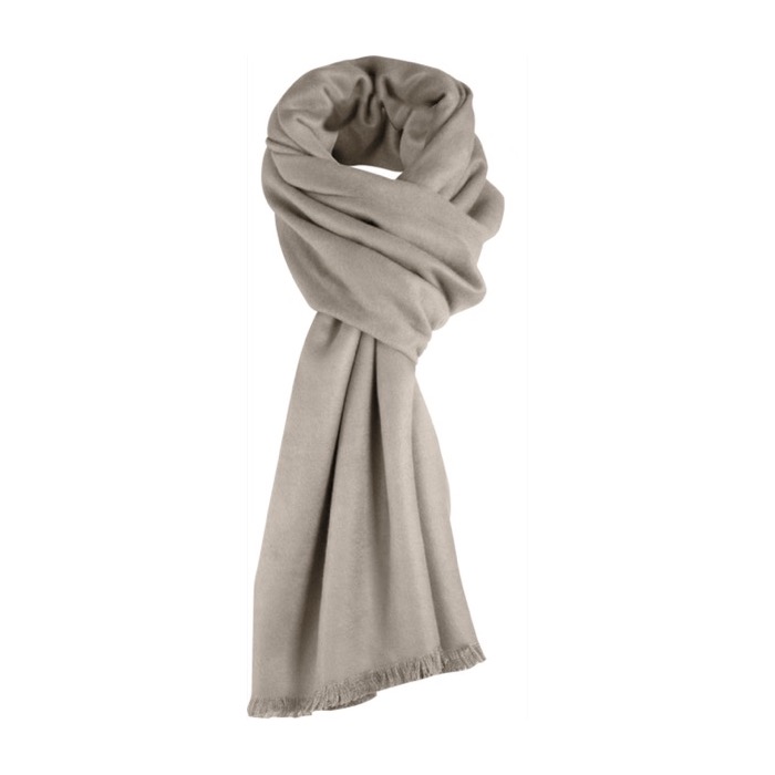 Cachecol acrílico com acabamento, suave toque tipo caxemira e franjas curtas nos seus extremos.