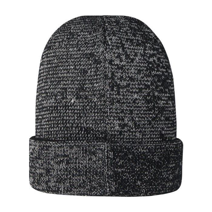 Gorro de uma camada com borda dobrada. Detalhes refletores. Rebordo da marca em malha.