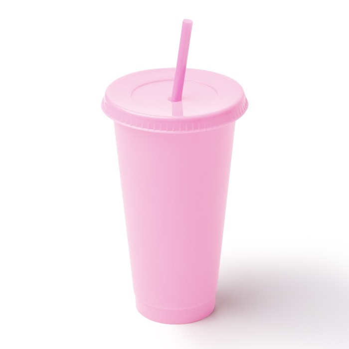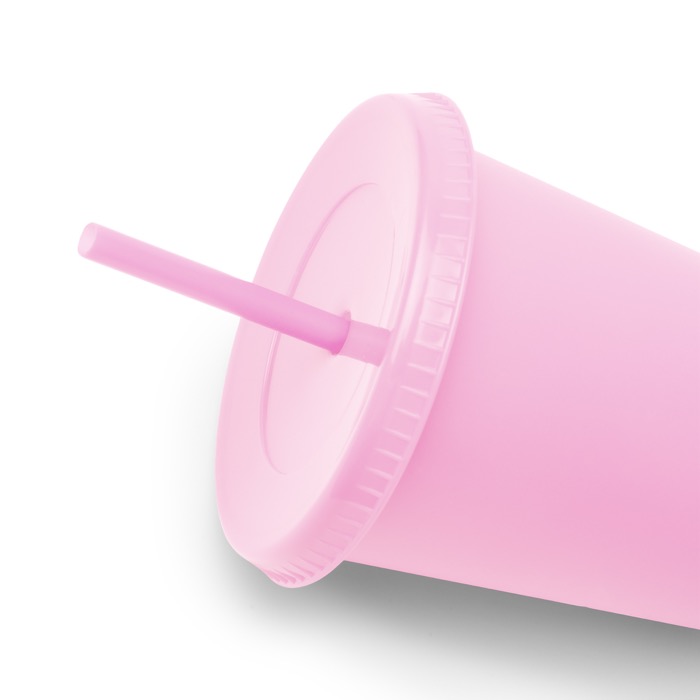 Copo reutilizável de plástico reciclado com tampa e palhinha 710ml