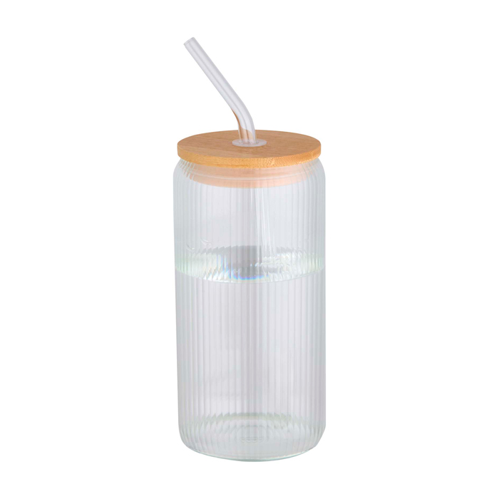 Copo de vidro borossilicato com palhinha de vidro e tampa de bambu, pensado para uso diário no escritório ou como brinde empresarial. O interior estriado dá-lhe um toque distinto sem complicar a limpeza enquanto o exterior liso proporciona uma superfície cómoda para personalizar com logótipo. A tampa ajuda a proteger a bebida durante reuniões ou no escritório. Entregue em caixa-oferta de cartão reciclado, pronta a distribuir em ações internas ou eventos de marca.