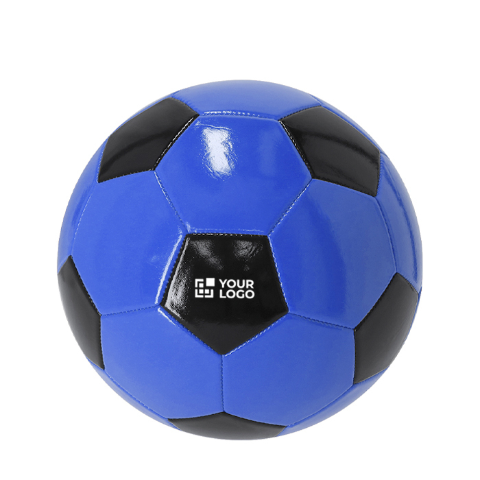 Bola de futebol de pele sintética e suave, de tamanho 5, desenhada para uso frequente em treinos e atividades de equipa. Exibe uma estrutura bicolor com painéis hexagonais de cores sólidas e pentagonais em preto, o que mantém uma estética limpa e reconhecível. A superfície proporciona um toque confortável e boa aderência durante o jogo. Opção prática para ações de marca em torneios internos, eventos desportivos corporativos ou dinâmicas de team building.