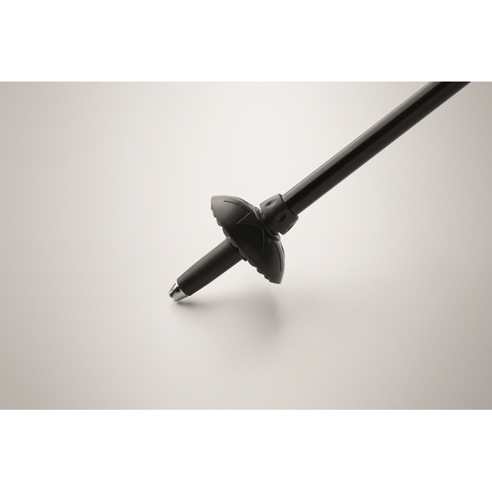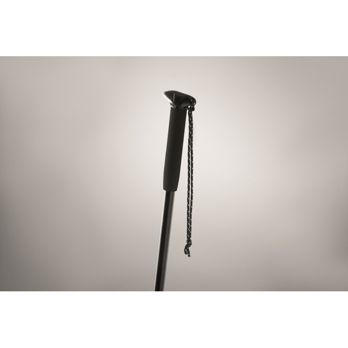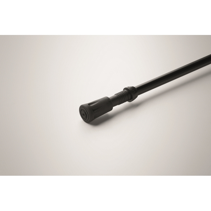 Bastão de caminhada com pega de EVA, tira de pulso e ponta de borracha para apoiar com segurança. Inclui roseta para a lama, pensada para terrenos moles e trilhos ao ar livre. A altura é ajustável entre 105 e 120 cm, o que facilita a adaptação a diferentes utilizadores em eventos ou atividades de empresa. Entregue em bolsa de rPET com cordão, prática para transporte e armazenamento. Útil para ações de team building ou kits de boas-vindas.