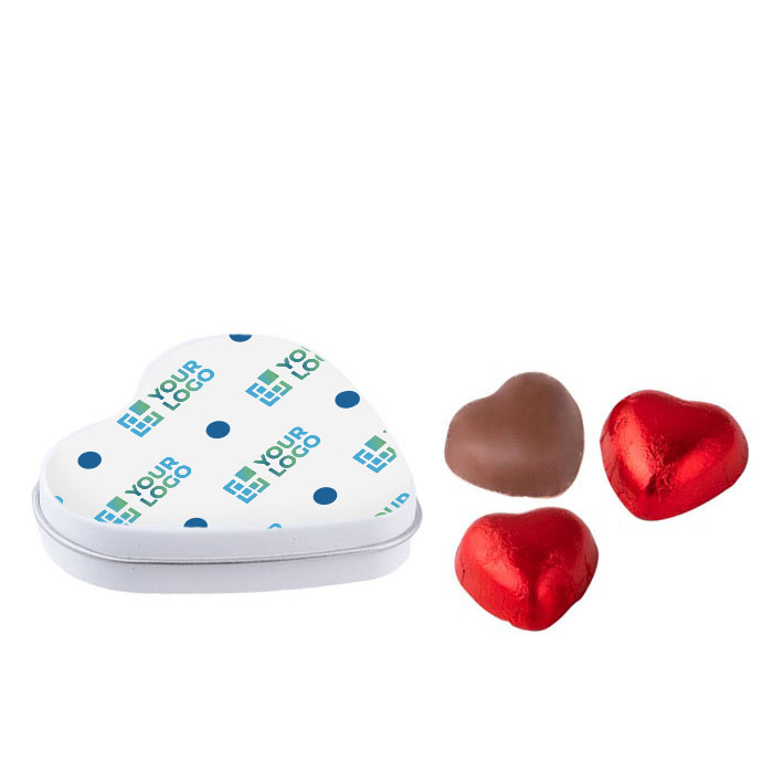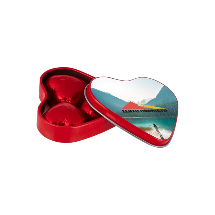 Surpreenda enviando uma mensagem carinhosa aos seus clientes com este chocolate em forma de coração. Estes doces são uma delícia que deixará marca.