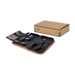 O conjunto de ferramentas "Spike" combina funcionalidade, durabilidade e sustentabilidade num belo pacote. A sua bolsa de armazenamento em cortiça não é apenas visualmente apelativa, mas também é ambientalmente responsável, sem comprometer a qualidade ou o desempenho. Dentro da bolsa encontrará um conjunto de 24 ferramentas essenciais feitas de aço carbono e plástico reciclado com certificação RCS: 1 faca para cortes limpos e precisos, 6 chaves de fendas de precisão para tarefas delicadas, 10 pontas de chave de fendas, 1 cabo de chave de fendas confortável, 1 barra de extensão para áreas de difícil acesso, 4 soquetes para diversas aplicações e 1 alicate de bico longo para agarrar e dobrar. Uma vez que o bambu é um produto natural, pode haver pequenas variações de cor e tamanho no artigo, o que pode afetar o resultado final da impressão. Embalado numa caixa de presente "STAC" proveniente de fontes sustentáveis.