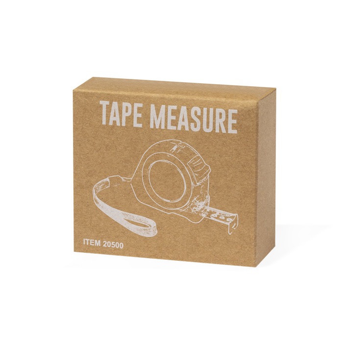 Fita métrica de 5 metros com fita metálica e mecanismo de bloqueio. Com corpo original em acabamento transparente, clip para cinto e alça de transporte em metal, com área especial para impresão. Embalado individualmente em caixa de design kraft.