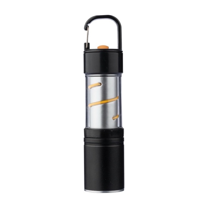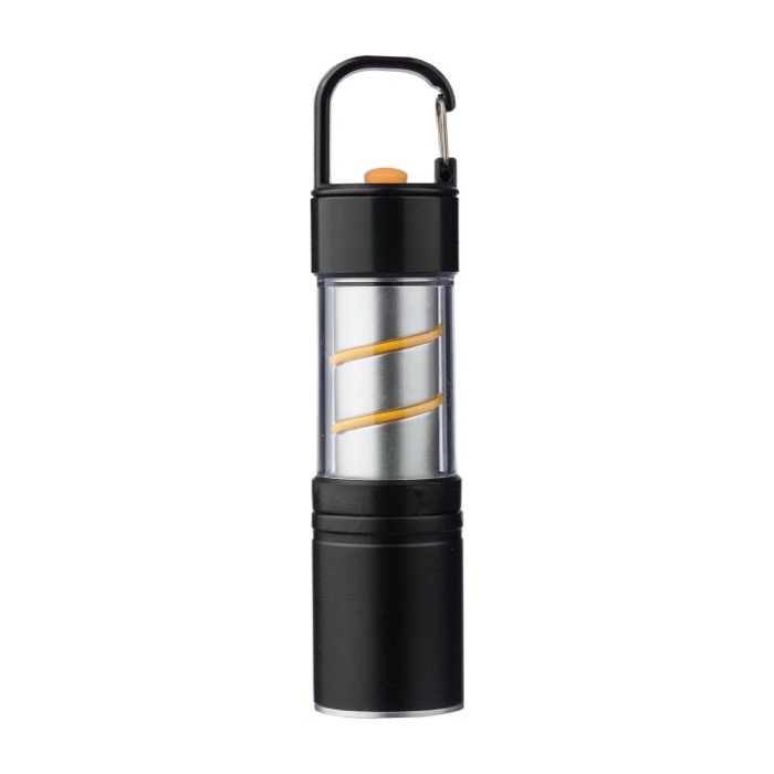 Lanterna COB de alumínio com 3 funções de luz e mosquetão