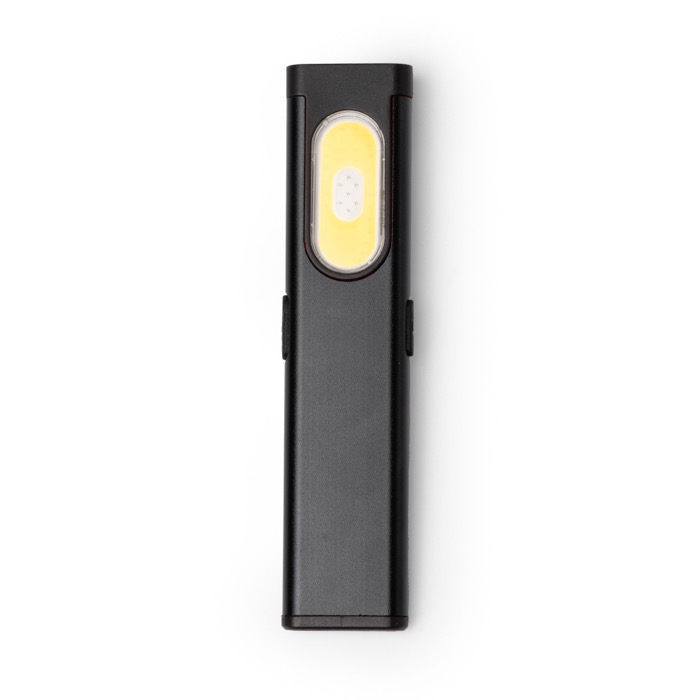 Lanterna dupla em alumínio com design ultrafino para um uso confortável no trabalho e nas deslocações. A luz lateral oferece três intensidades e um modo vermelho intermitente para sinalização, enquanto a luz frontal fornece um feixe mais concentrado para tarefas pontuais. Integra um íman para a fixar a superfícies metálicas e um clipe que facilita levá-la no bolso, no cinto ou na mochila. Uma opção prática para dotações internas, feiras, ações de segurança ou brindes empresariais com personalização.