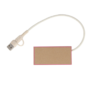 Hub USB personalizado com papel reciclado, dupla entrada USB e Type-C, 2 portas USB-A e 1 porta USB-C. Inovação ecológica ideal para os seus empregados.