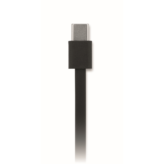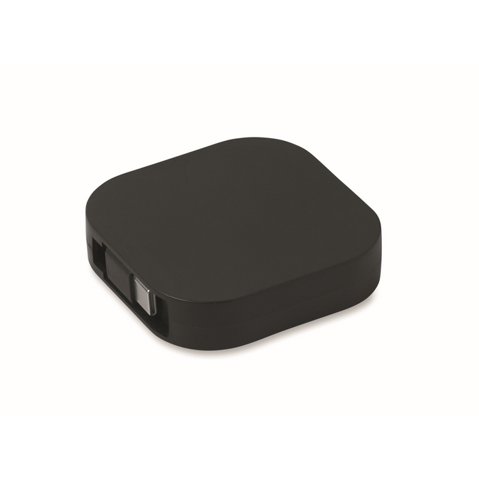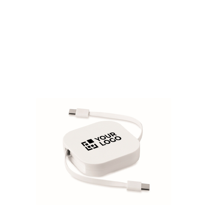 Cabo de carga e dados retráctil de PVC com bolsa de ABS, pensado para uso diário no escritório e viagens. Oferece potência até 100 W para alimentação rápida e velocidade de transferência de dados de 480 Mbps para sincronizar ficheiros de forma prática. Inclui função de suporte para telemóvel, útil para videochamadas ou para ter o ecrã à vista enquanto carrega. Ligação USB Tipo-C a USB Tipo-C, compatível com a maioria dos dispositivos atuais, ideal para packs corporativos e ações de boas-vindas.