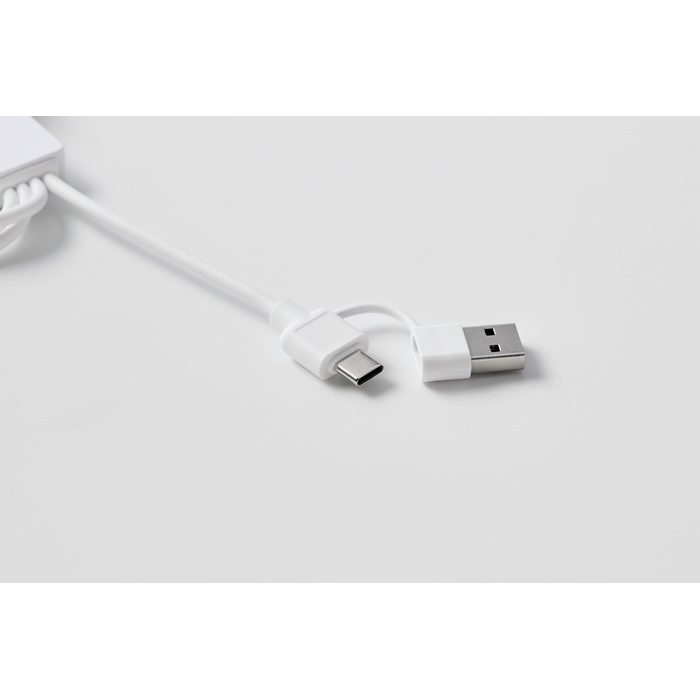 Cabo de carga retrátil multiUSB com detalhes em bambu e cabo de 90cm