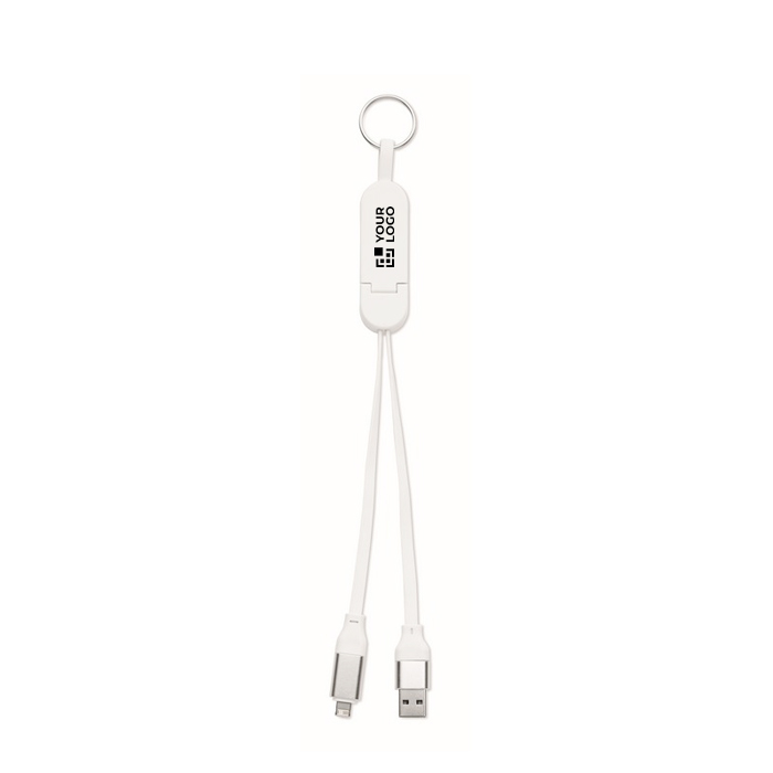 Porta-chaves e suporte para telemóvel com cabo de 60 W em estrutura de ABS reciclado. Entrada: 2 em 1 Tipo-C e Tipo-A. Saída: Tipo-C e micro-B (2 em 1). Comprimento do cabo: 26 cm.