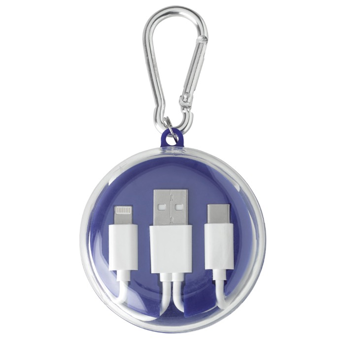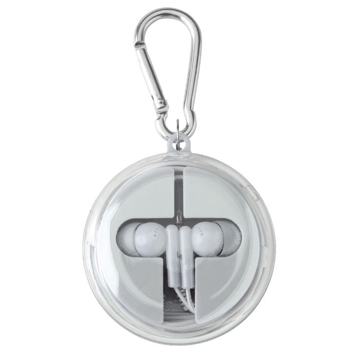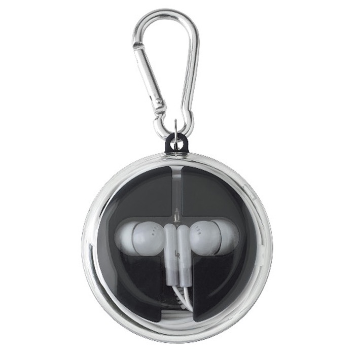 Estojo com mosquetão que inclui auriculares e cabo de carregamento