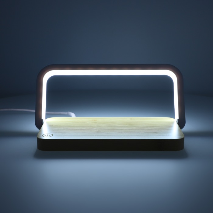 Carregador sem fios de bambu para secretária com iluminação 15 W