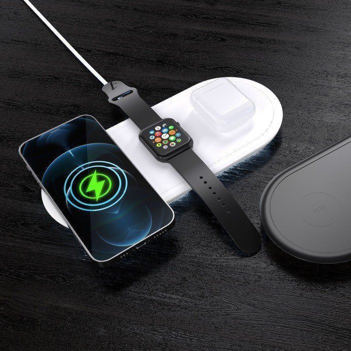 Carregue o seu telemóvel, Apple Watch e AirPods simultaneamente com este carregador sem fios rápido 3 em 1. Desenhado para conforto extra, dispõe de uma elegante base LED e permite carga rápida até 15 W. Perfeito para manter todos os seus dispositivos a carregar num só lugar. Inclui cabo USB-C a USB-C de 100 cm para facilitar a configuração.