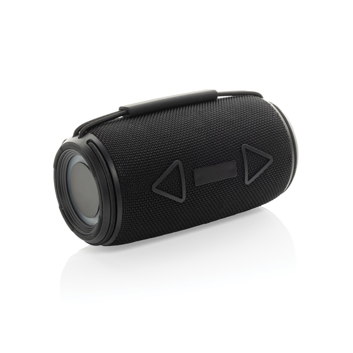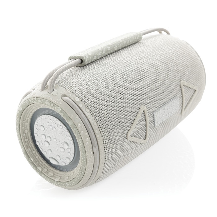 Coluna de 16W fabricada com plástico ABS reciclado com certificação RCS e tecido RPET, combina um desempenho de áudio excecional com durabilidade e baixo impacto ambiental. Com uma potente saída de 16W e subwoofers duplos, oferece graves profundos e um som nítido para uma experiência auditiva imersiva. A sua classificação de impermeabilidade IPX4 torna-a adequada para uso no exterior. A asa de transporte integrada e a bateria recarregável de iões de lítio de 1500 mAh proporcionam portabilidade e até 7 horas de reprodução a 50 % de volume, enquanto a tecnologia Bluetooth 5.3 garante uma conectividade fluida e um emparelhamento automático. Inclui microfone e função de captura, o que a torna ideal para chamadas em mãos livres. O conteúdo reciclado total é de 37 % com base no peso total do artigo. Esta coluna não contém PVC e apresenta-se em caixa kraft.