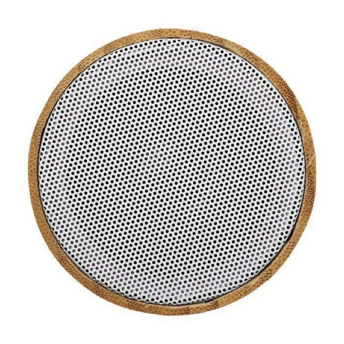 Altifalante Bluetooth® em bambu verdadeiro e com saída de 3 W. Autonomia de aproximadamente duas horas no volume máximo. Alcance de funcionamento de 10 metros.