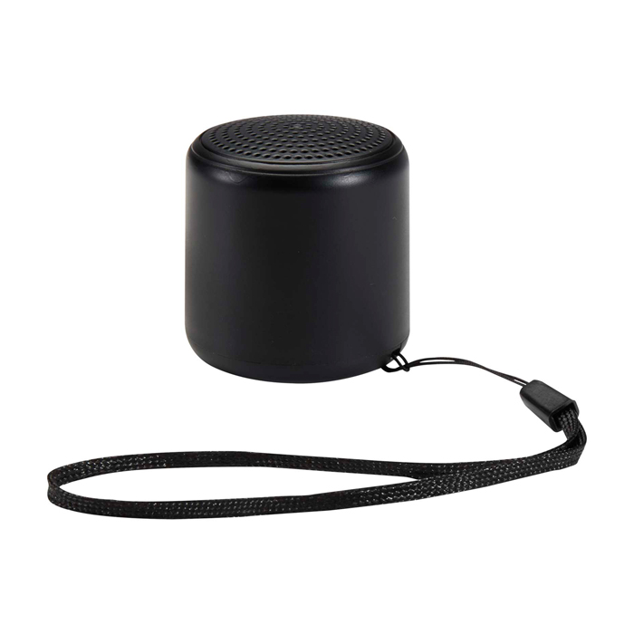 Colunas Bluetooth compactas de plástico reciclado, concebidas para o acompanhar em deslocações, no escritório ou eventos. Incluem uma tira de pulso que facilita o transporte e controlo de um só botão para gerir a reprodução rapidamente. A bateria de 300 mAh oferece autonomia para uso pontual durante o dia de trabalho e o carregamento via Tipo-C simplifica a compatibilidade com cabos modernos. Incluem cabo de carga de Tipo-A a Tipo-C de 30 cm. Recomendadas para ações de marca e brindes empresariais com logo.
