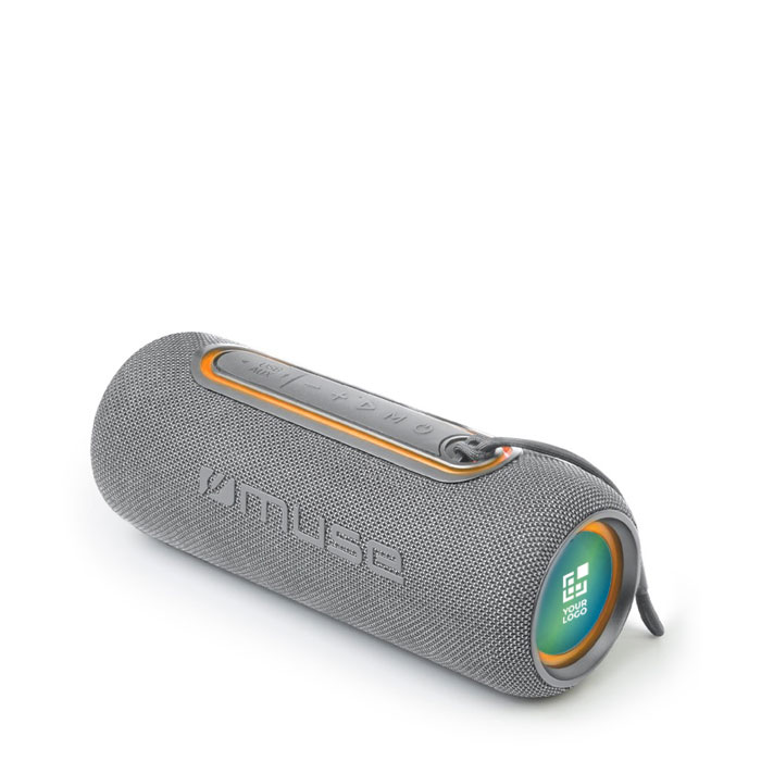 Colunas sem fios hidrorresistentes (IPX5) com detalhes LED, para desfrutar da música tanto no interior como no exterior. As colunas oferecem um som cristalino com uma potência máxima de 20 W. A bateria tem uma grande capacidade de 3000 mAh e pode ser rapidamente carregada via conexão USB-C. Equipadas com função de mãos-livres para facilitar as conversas telefónicas.