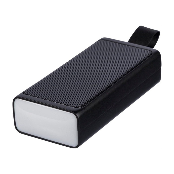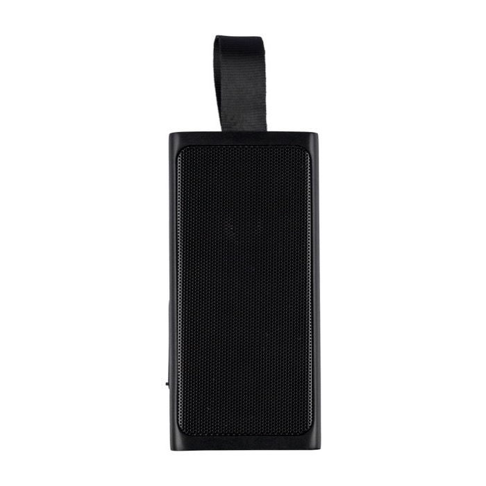 Colunas portáteis de plástico reciclado com rede metálica e lanterna COB LED (chip on board) incluída para apoio no exterior. Contam com pega de transporte de silicone para as movimentar confortavelmente e ligação sem fios 5.4 para as emparelhar com telemóveis e tablets. Dispõem de bateria de 500 mAh e carregam via entrada Micro-B com alimentação 5 V/500 mA. Incluem logótipo de reciclagem e são entregues em caixa individual de cartão castanho. Adequadas para ações de marca em eventos, rotas ou promoções de verão.