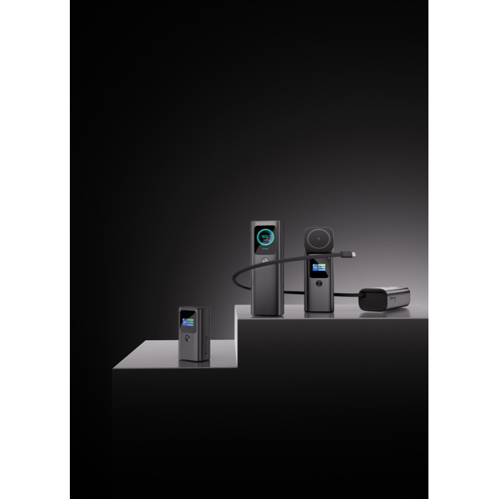 Bateria externa com capacidade de 15.000 mAh e compatível com carregamento ultrarrápido de 100W, permitindo manter carregados à velocidade máxima todo o tipo de dispositivos, incluindo portáteis e MacBooks. Incorpora um ecrã TFT a cores que mostra em tempo real a velocidade de carregamento e outros detalhes essenciais. Integra um suporte magnético sem fios de 15W para telefone, que o mantém na posição adequada para um uso em mãos livres. Dispõe de três portas de saída (duas USB-C e uma USB-A) mais a opção de carregamento sem fios, permitindo carregar até quatro dispositivos em simultâneo. Fabricada em alumínio resistente, combina um acabamento premium com um design compacto e portátil. Livre de PVC.