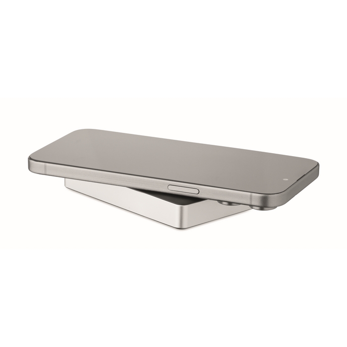 Powerbank de alumínio reciclado com capacidade de 10 000 mAh e indicador luminoso para controlar o nível de carga com um só olhar. Dispõe de carga sem fios de 15 W, útil para secretárias, salas de reunião ou espaços de atenção ao cliente. Também permite carga via cabo com PD de 20 W, desenhado para carregamento rápido e alimentação estável no quotidiano. Opção prática para packs de boas-vindas, eventos ou ações de fidelização.
