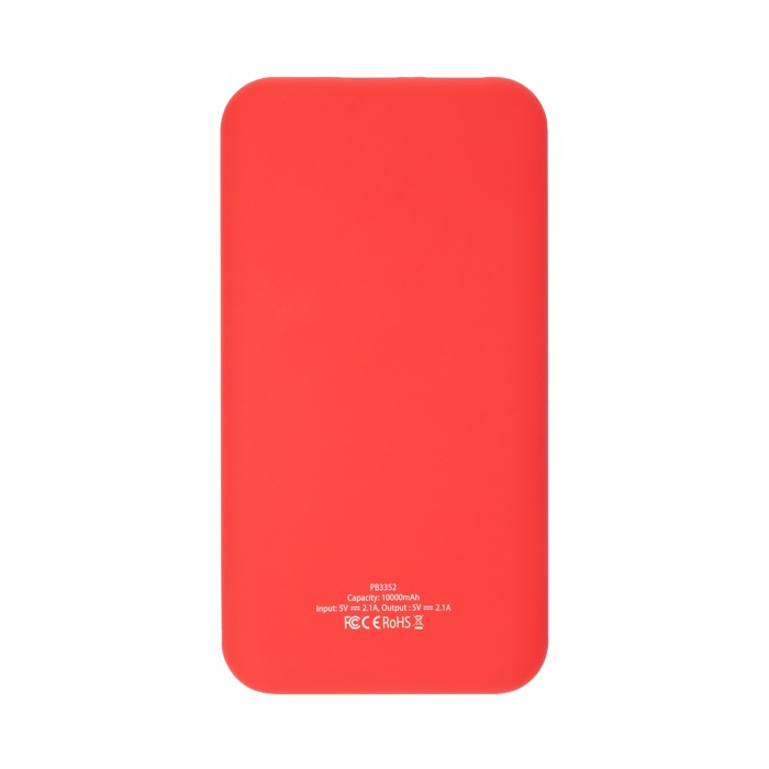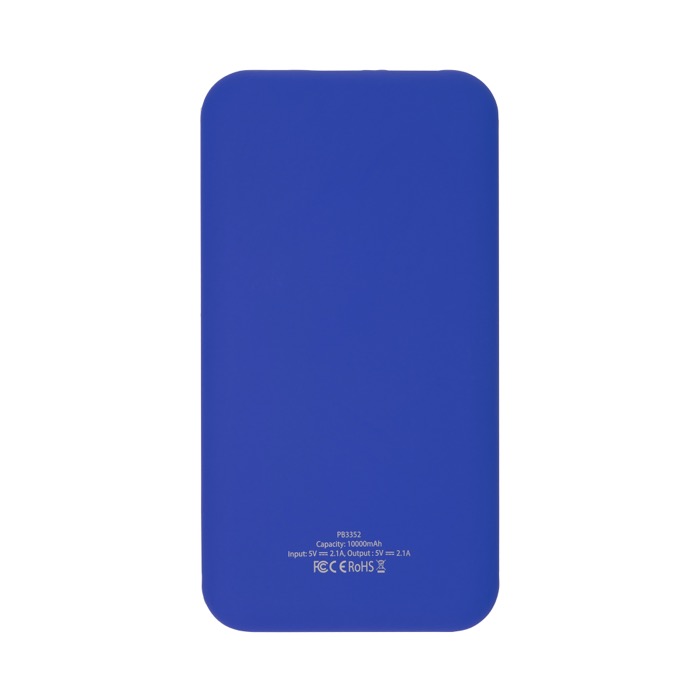 Powerbank de ABS bicolor com capacidade de 10 000 mAh e indicador luminoso de percentagem de carga. Conta com entrada Tipo-C e saída USB, compatível com smartphones, câmaras digitais e consolas. Inclui cabo Tipo-C e é entregue em caixa-oferta decorativa.