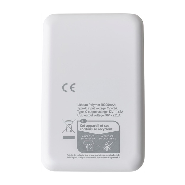 Powerbank de plástico reciclado com carga rápida 10 000 mAh