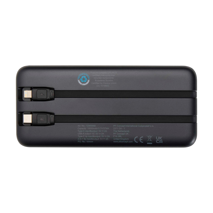 Powerbank de plástico reciclado com 2 cabos 10 000 mAh