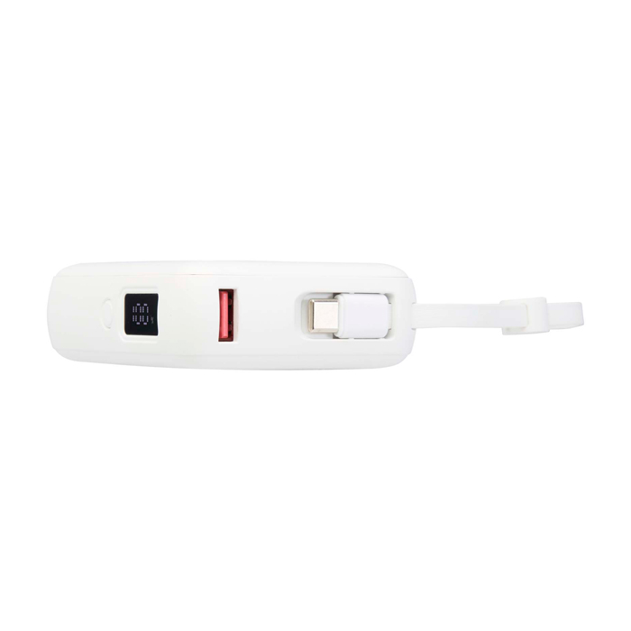 Aumente a sua produtividade com este powerbank equipado com portas USB-C e USB-A de alta potência. Cabo integrado para carregar sem problemas.