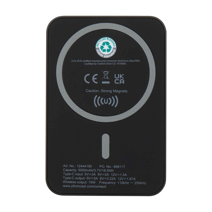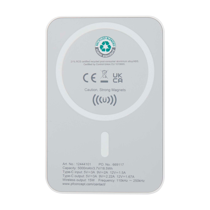 Powerbank sem fios magnético de plástico reciclado 5000 mAh