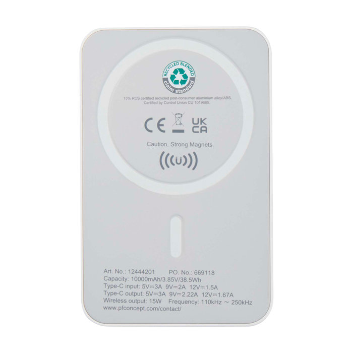 Powerbank sem fios magnético de plástico reciclado 10 000 mAh