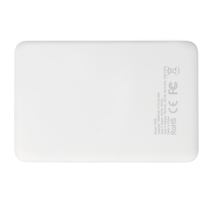 Mantenha a bateria em qualquer lugar com este powerbank de 5000 mAh. Com 3 portas de carga, inclui saída USB-C Power Delivery. Garante carga rápida e eficiente para todos os seus dispositivos. Com estrutura fina, é perfeito para viagens e uso diário. Feito de ABS reciclado. Inclui cabo USB-C de 22 cm.
