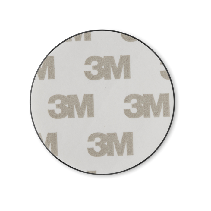 Acessório de telemóvel dobrável em forma redonda em ABS com duas funções: suporte de telefone ou apoio. Adesivo 3M na parte traseira.