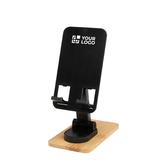 Suporte dobrável para telemóvel para secretária com base de bambu