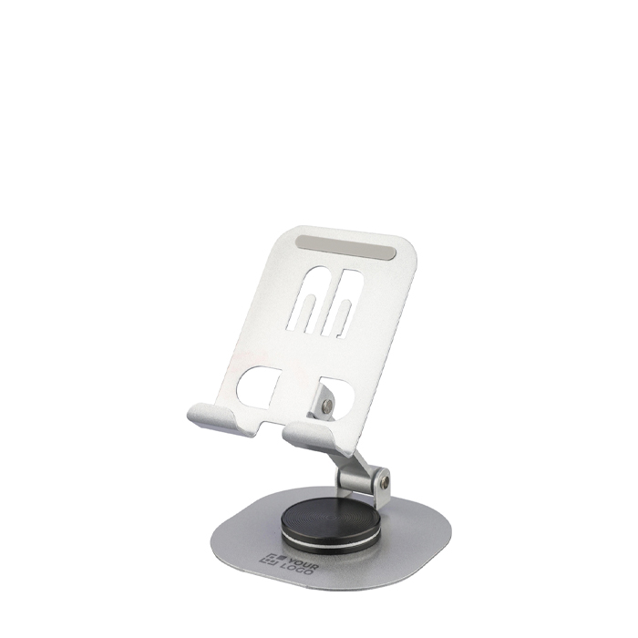 Suporte para telemóvel de liga de alumínio com rotação 360º para ajustar o ângulo de visão de acordo com a tarefa. Estrutura dobrável que fecha por completo para o guardar numa gaveta, mochila ou pasta sem ocupar espaço. A base robusta e com peso ajuda a manter o telemóvel estável durante videochamadas, formação online ou uso em balcão. É entregue numa caixa-oferta branca, pronto para entregas internas ou ações de marca no escritório e eventos.