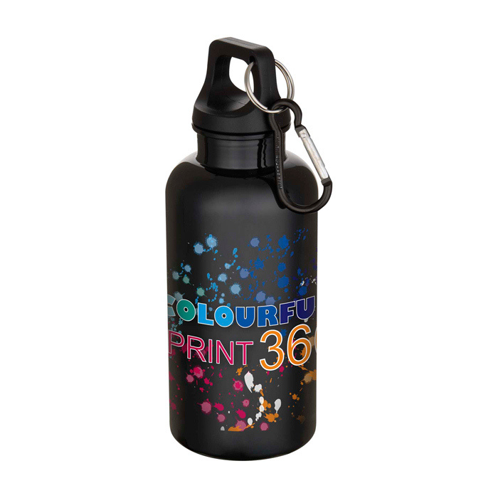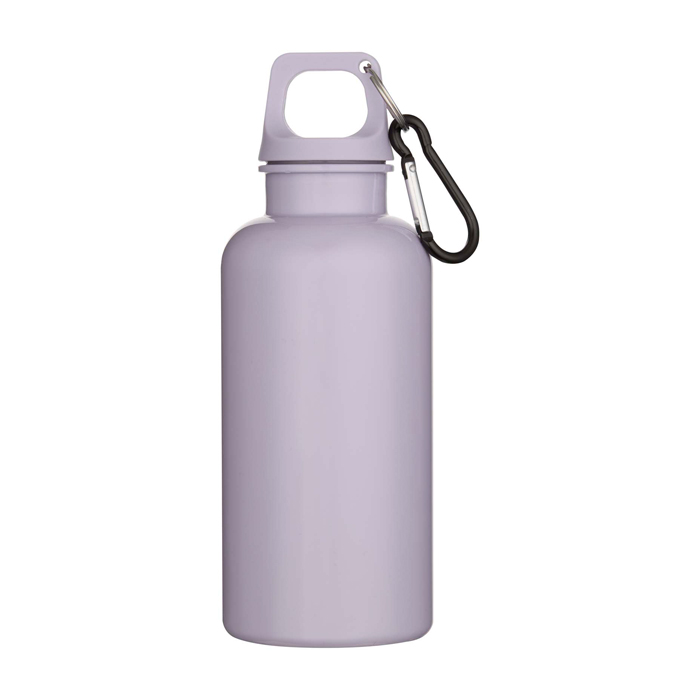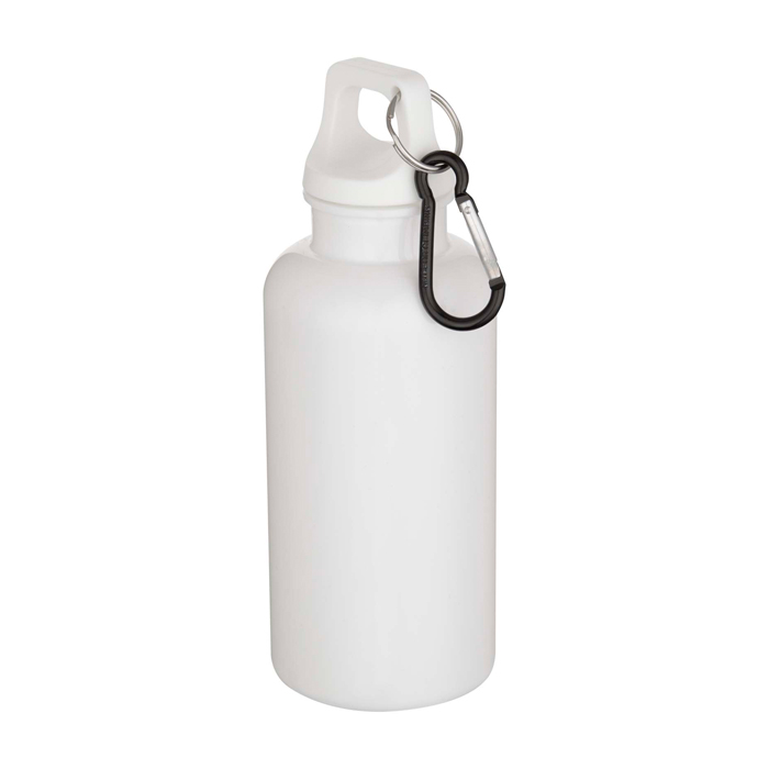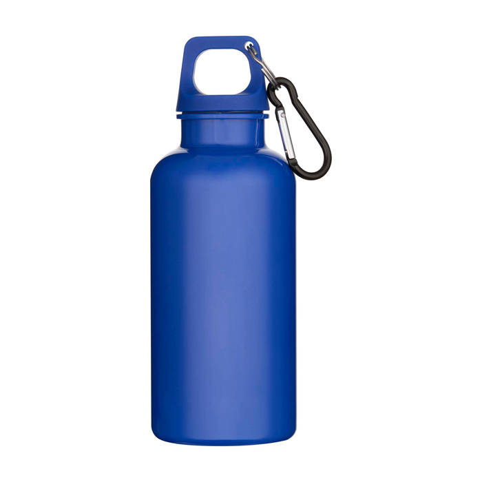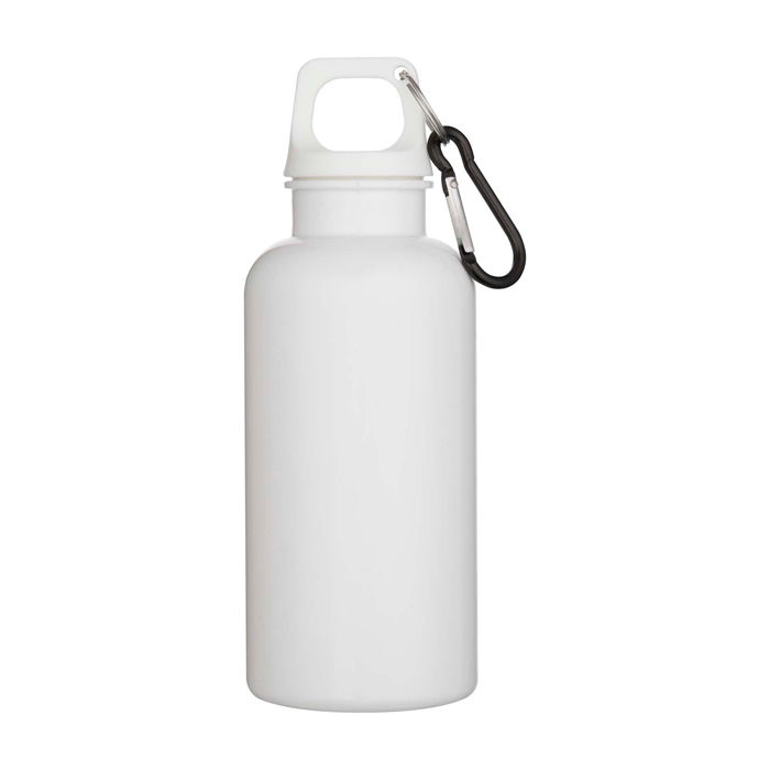 Garrafa de plástico reciclado com mosquetão e tampa de rosca 400 ml
