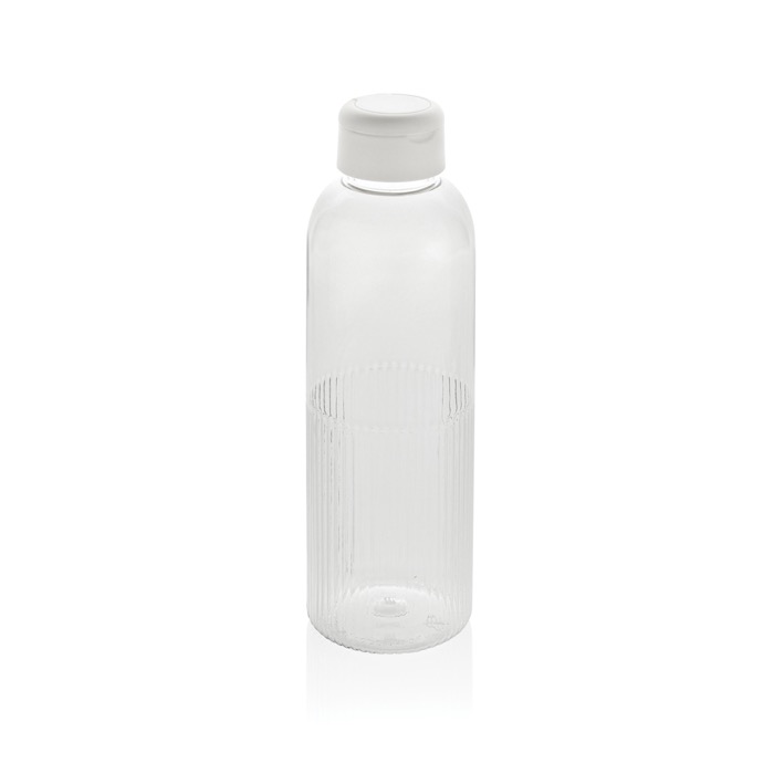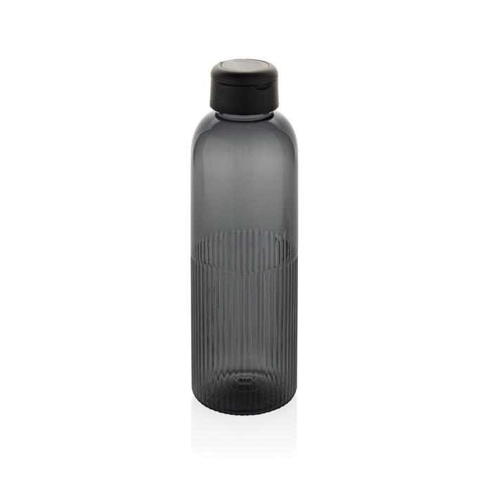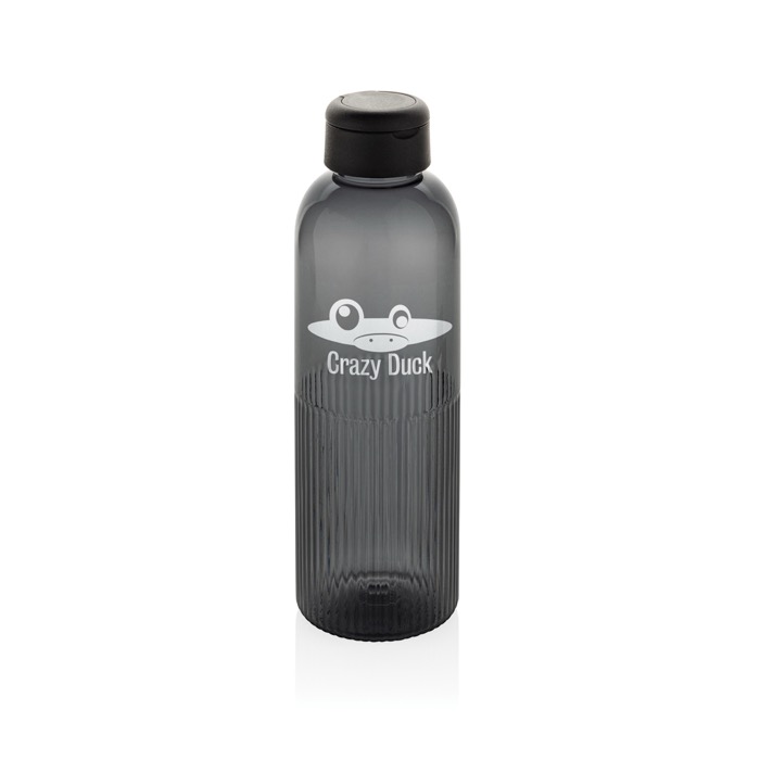 Garrafa de água com um design único que incorpora um efeito ondulado na base, o que lhe confere um aspeto distintivo e melhora a pega. Conta com uma tampa de rosca segura com asa integrada que facilita o transporte em qualquer ocasião. Com uma capacidade de 750 ml, é totalmente hermética e está fabricada com 73 % de PET reciclado com certificação RCS, o que a torna numa opção elegante e sustentável para a hidratação diária.