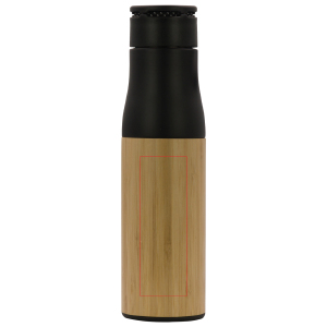 Garrafa térmica de parede dupla com uma corda para facilitar o transporte. O exterior tem uma camada de bambu que dá à garrafa um aspeto elegante e duradouro. Com uma capacidade de 500ml e vem numa caixa de presente.