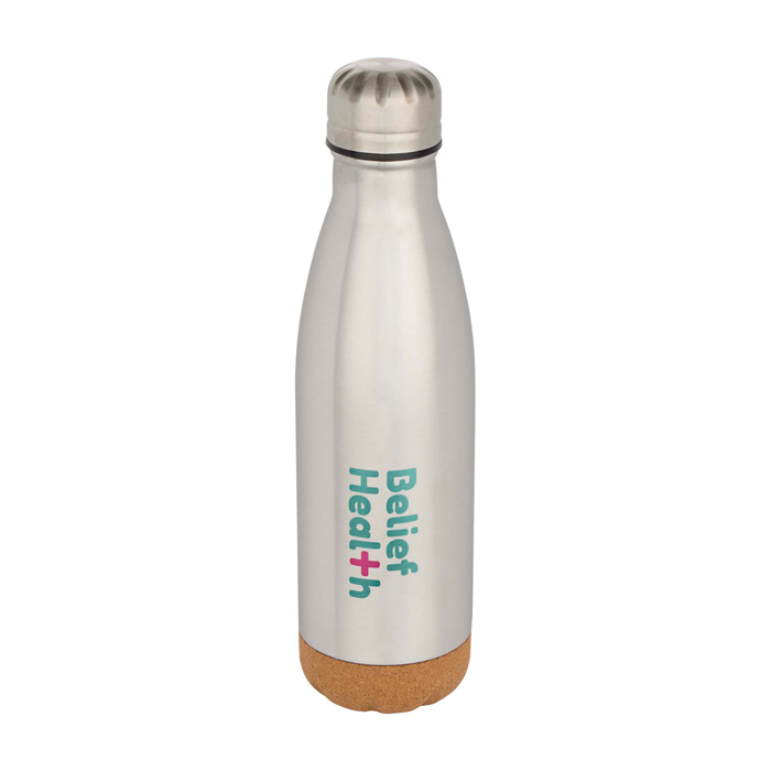 Garrafa de aço inoxidável de parede dupla com base de cortiça 500 ml
